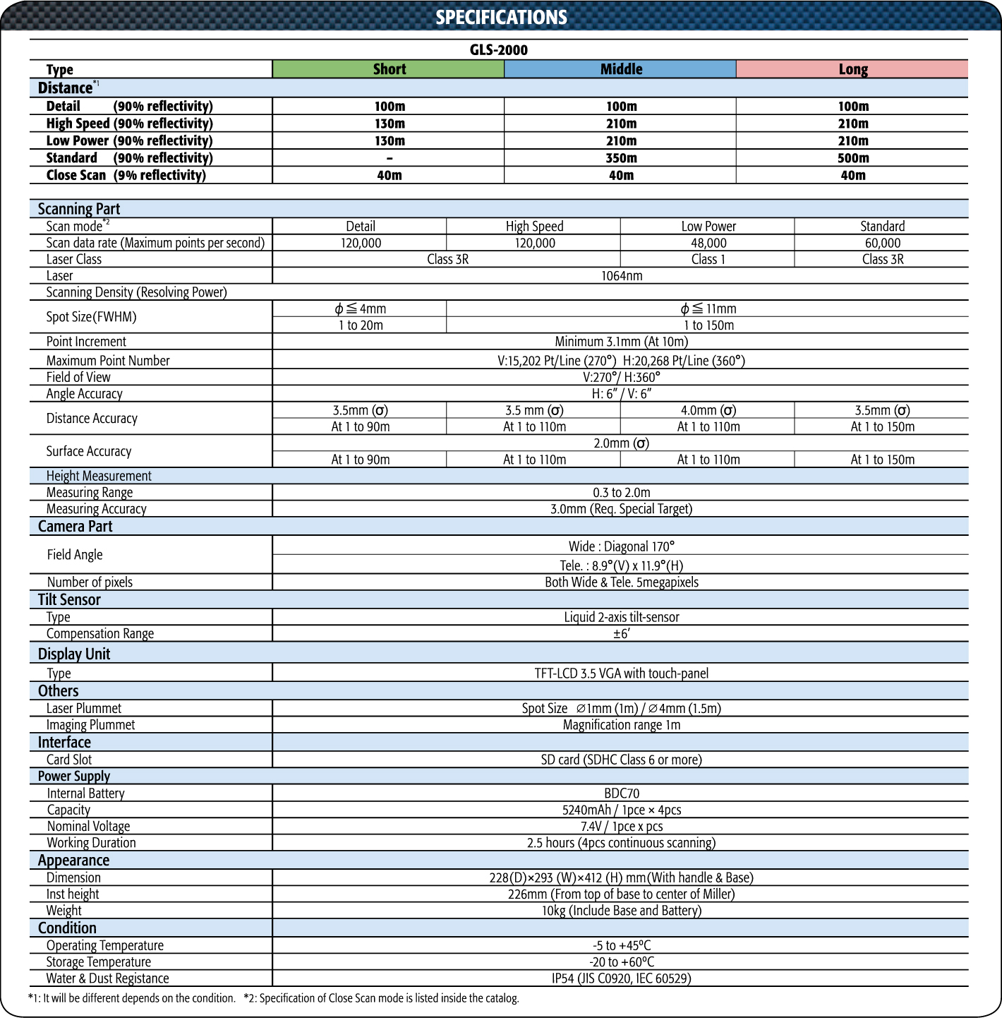- Speedy, precise scanning with variable range settings - "Precise Scan Technology II" providing high quality point cloud data with reduced noise - Full-dome scanning range - World's first "Direct Height Measurement" - Easy and accurate registration methods - Onboard software with intuitive and easy operation