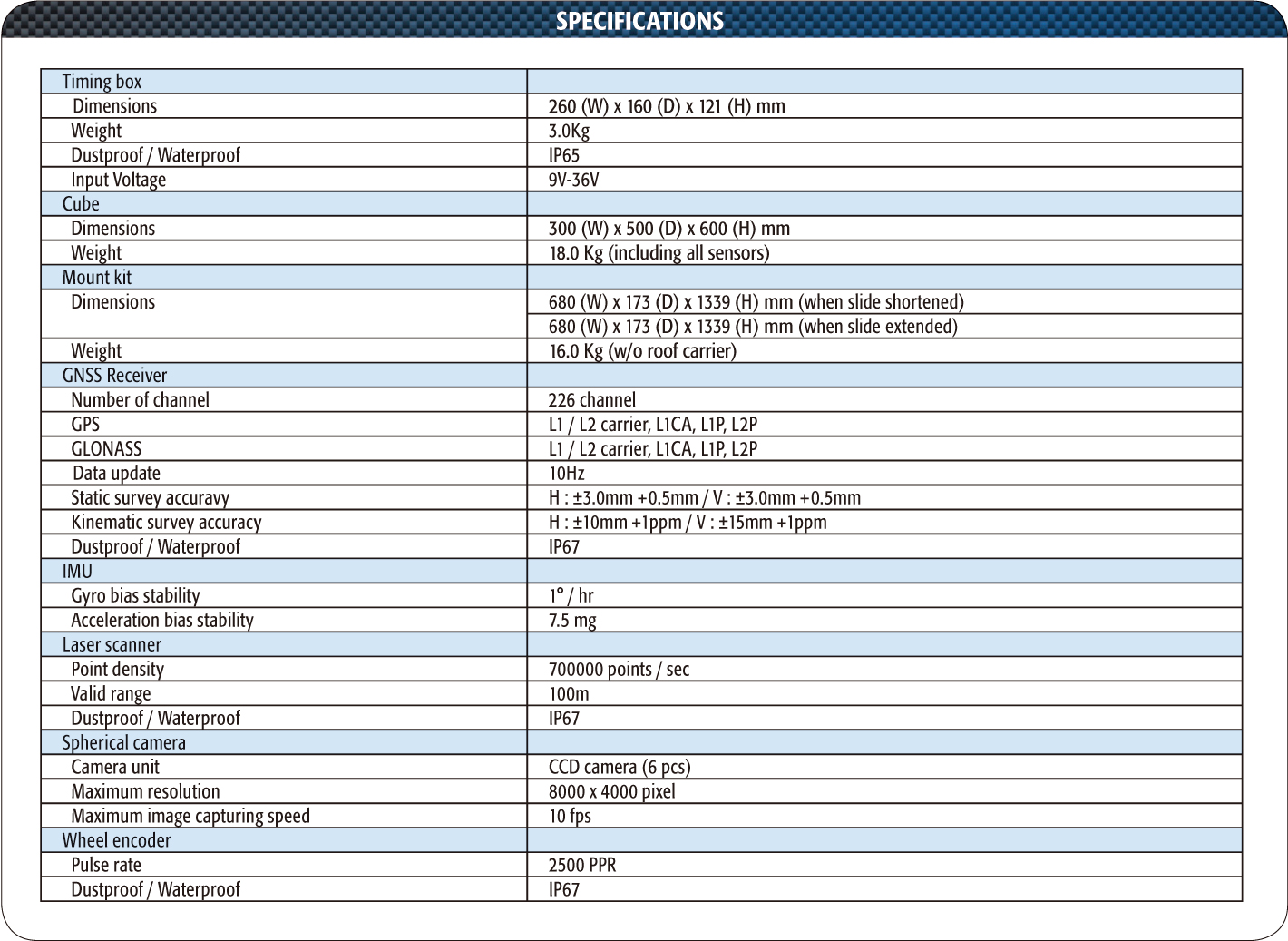 IP-S3’s positioning system is an integration of an Inertial Measurement Unit (IMU), GNSS receiver (GPS and GLONASS) and a vehicle odometer. It provides precise positioning and attitude in a dynamic environment. - Easy mounting setup - Ultra-compact and lightweight design - High-speed and high-density point cloud acquisition - Portable carrying case ensures security - Efficient for mapping and GIS data updating - World's first Play Back function to check and review the acquired data - Highly effective to obtain 3D spatial information in shorter time and in lower cost